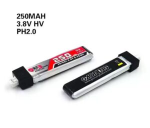 The GAONENG 250mAh 30C 1S1P 3.8V LiHV battery with PH2.0 connector delivers dependable, high-quality power for micro quadcopters. It is compatible with popular models such as the Blade Inductrix FPV, Blade Inductrix FPV Pro, Horizon Inductrix, BETAFPV 65S, QX65, US65, UK65, and Mobula7, providing consistent performance and reliable flight time.